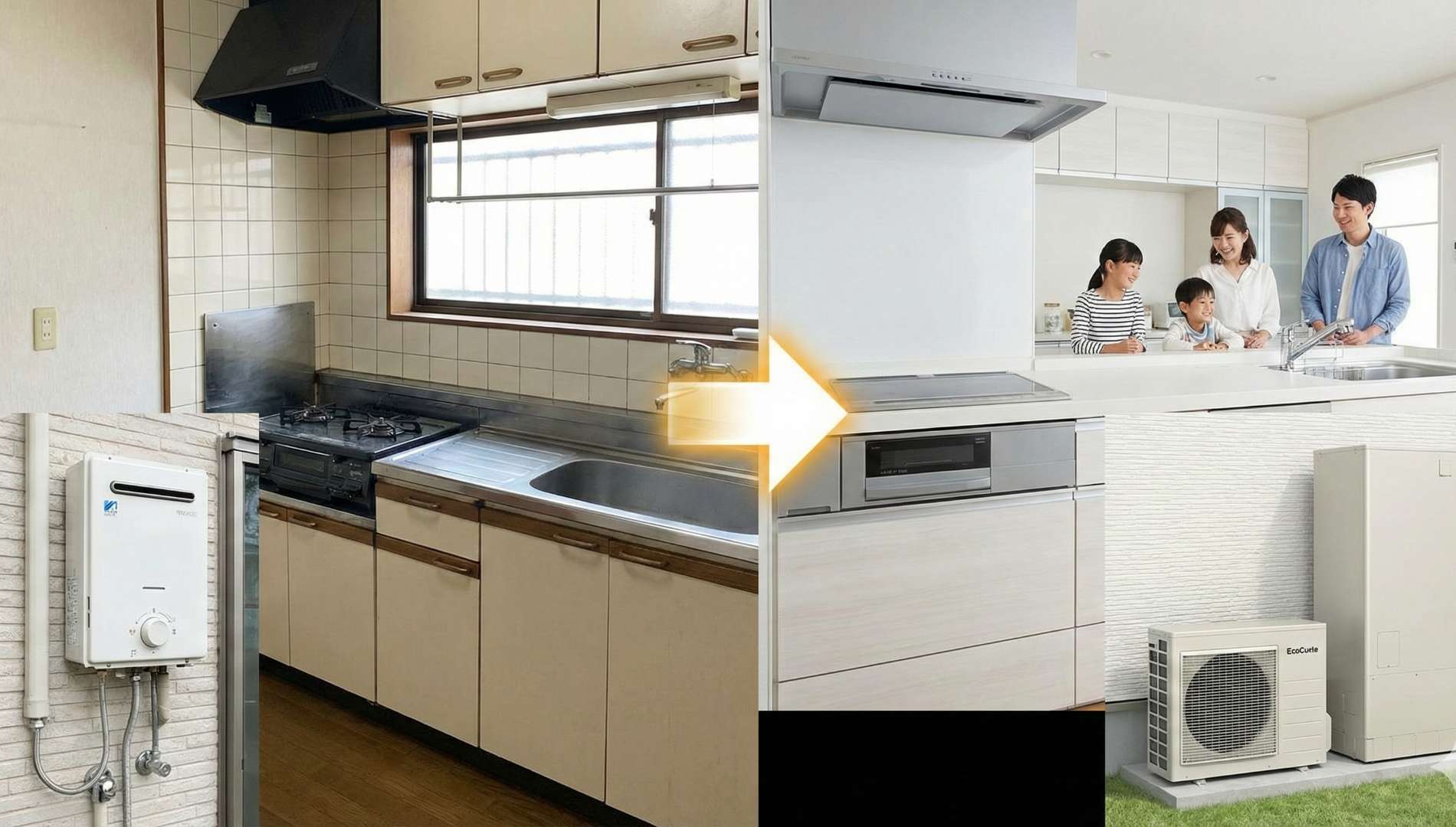 ガスコンロからIHへ、給湯器をエコキュートへ同時に交換することは、初期費用こそかかりますが、長期的な光熱費削減と、安全性・利便性の向上という大きなリターンが見込めるリフォームです。